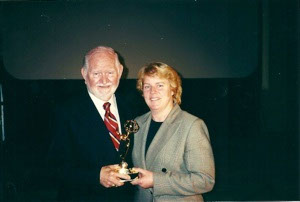 Robert Prosky and Gayle Knutson with Midwest Emmy in Entertainment for GRANDFATHER'S BIRTHDAY.